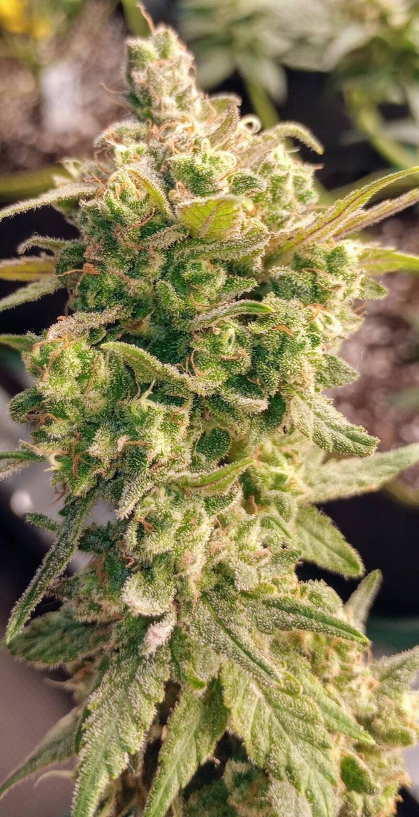 She loves multi-topping and rewards it with a top-heavy canopy that demands staking or netting. Dark green leaves frost up underneath, giving her a battle-worn look that screams potency.
